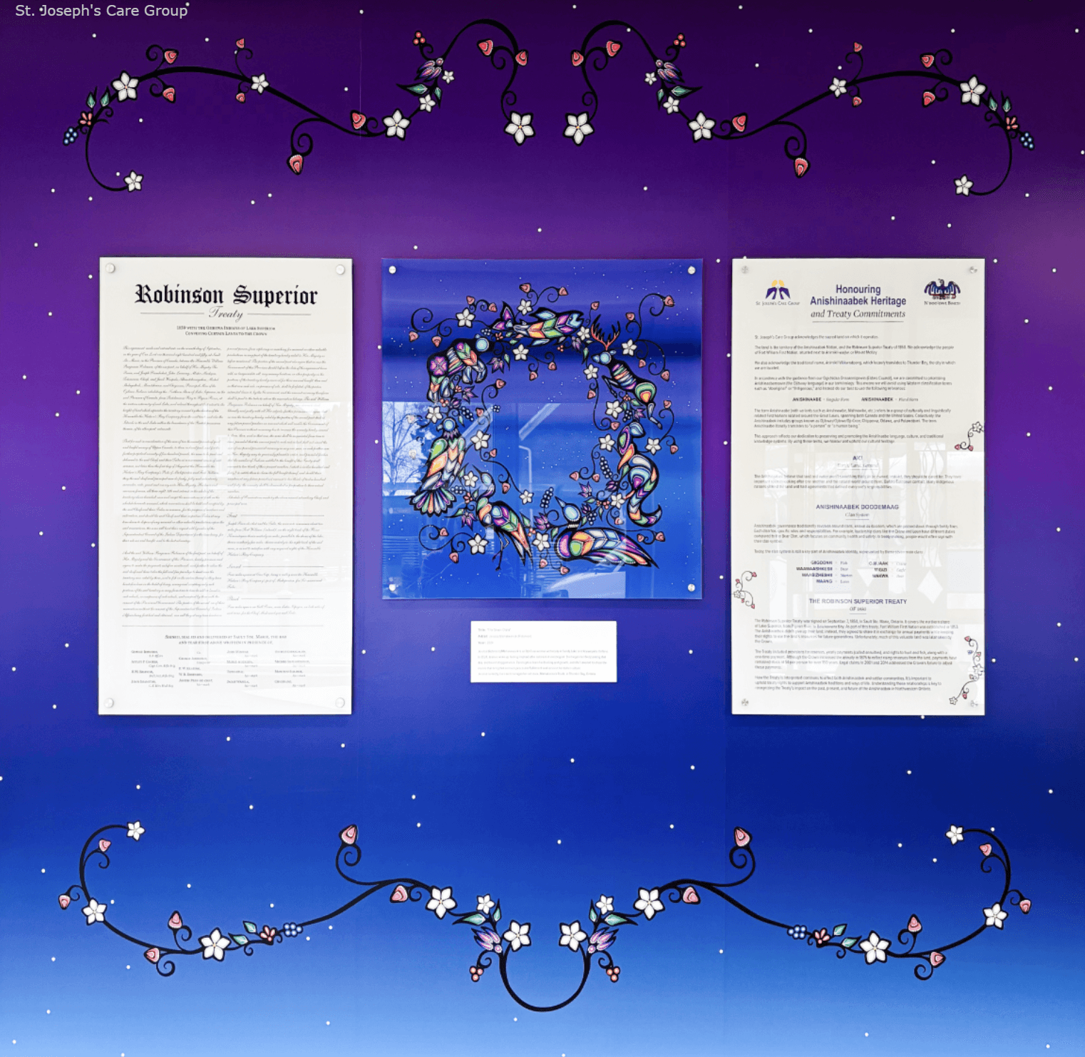 The work surrounded the Robinson - Superior Treaty with Jessica’s art showcased on the centre panel and inspiring the rest of the designed pieces.