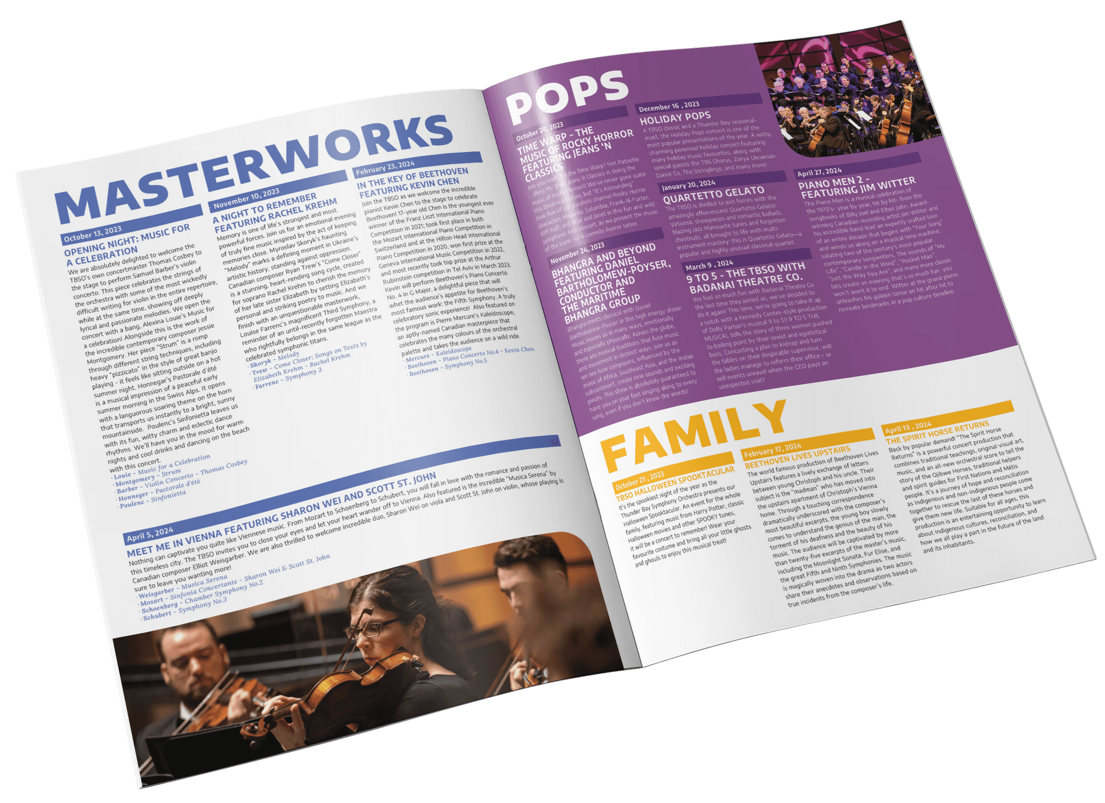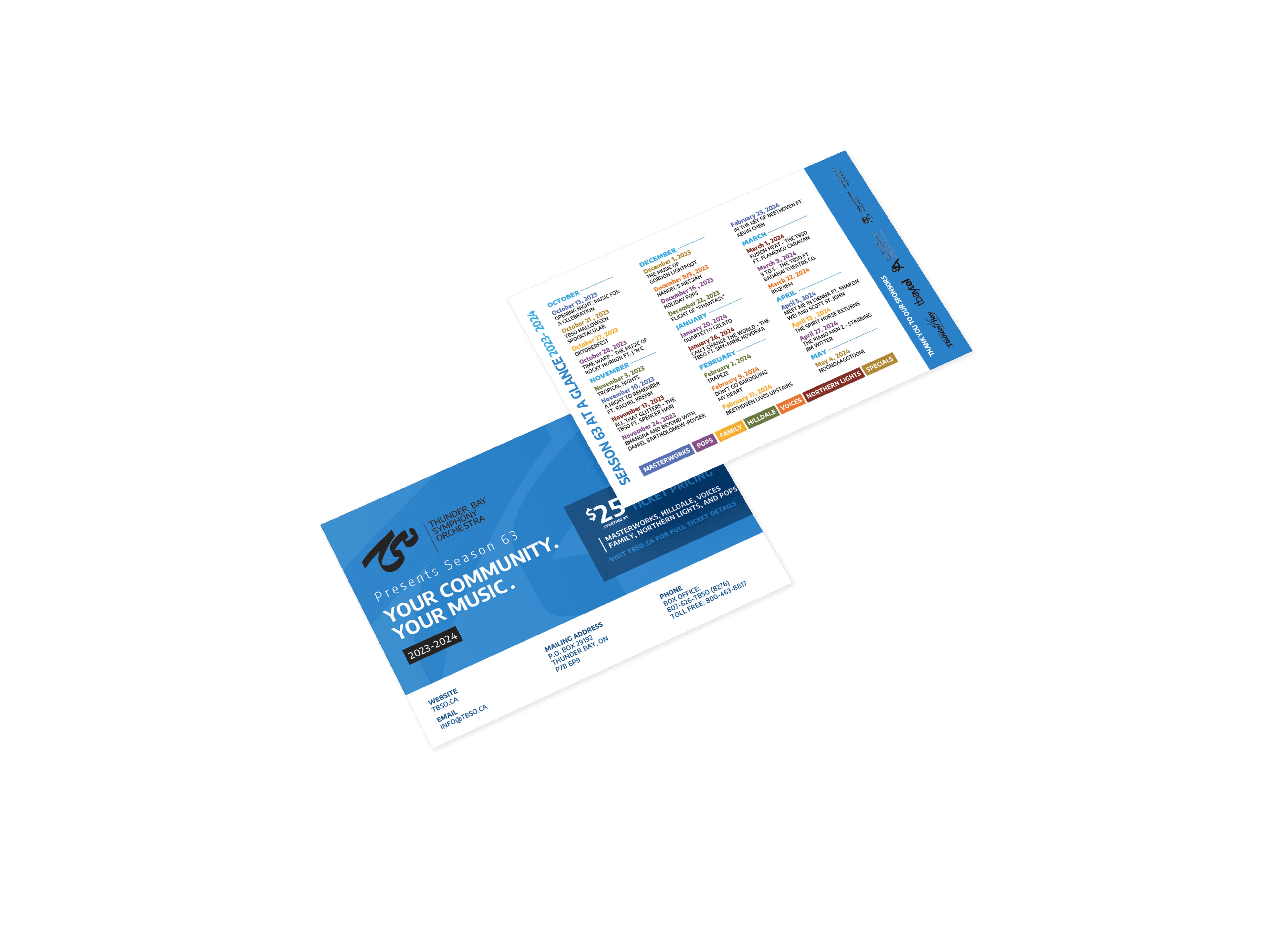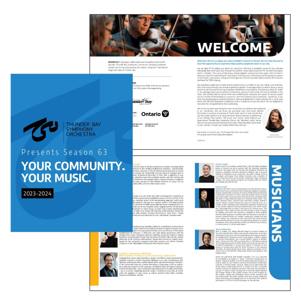 With a new season about to begin, the Thunder Bay Symphony Orchestra (TBSO) required a new program booklet to highlight the upcoming shows and design direction to further promote the season on Social Media and through printed mailers.